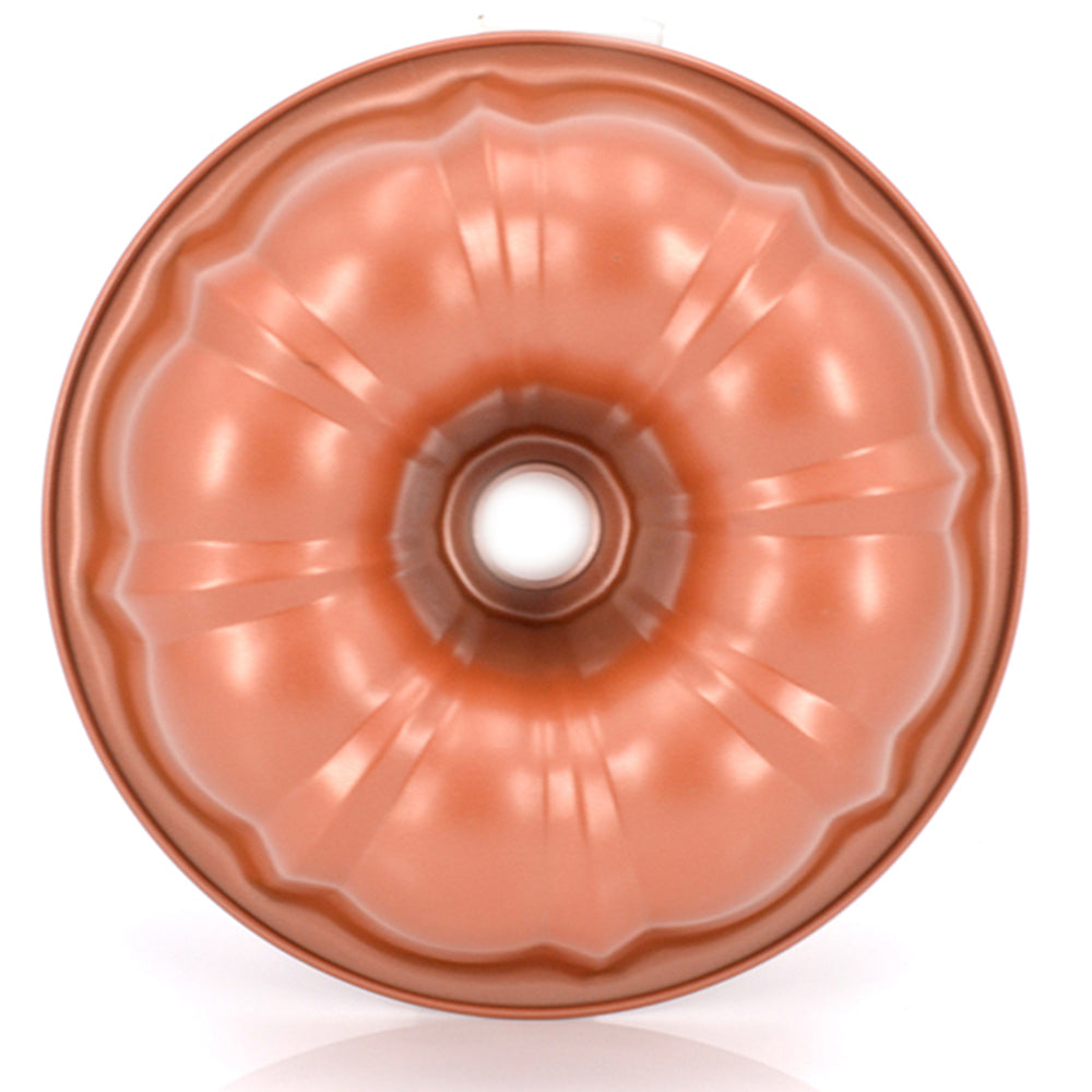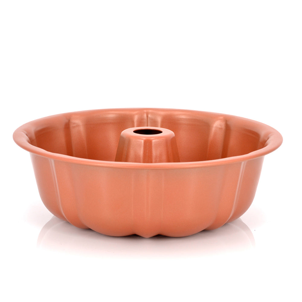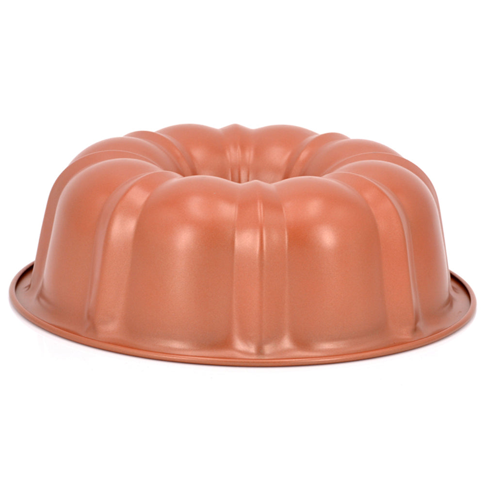 This Bundt Pan features a non-stick copper coating for easy release and quick clean up. The decorative ridges makes beautifully sculpted Bundt cakes every time, just use your favorite cake mix or recipe.