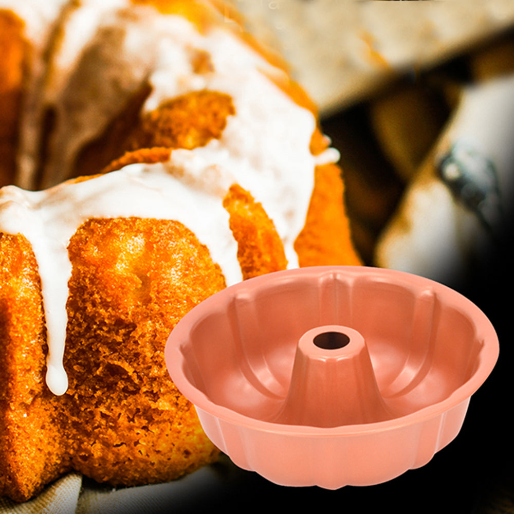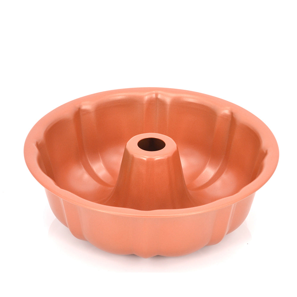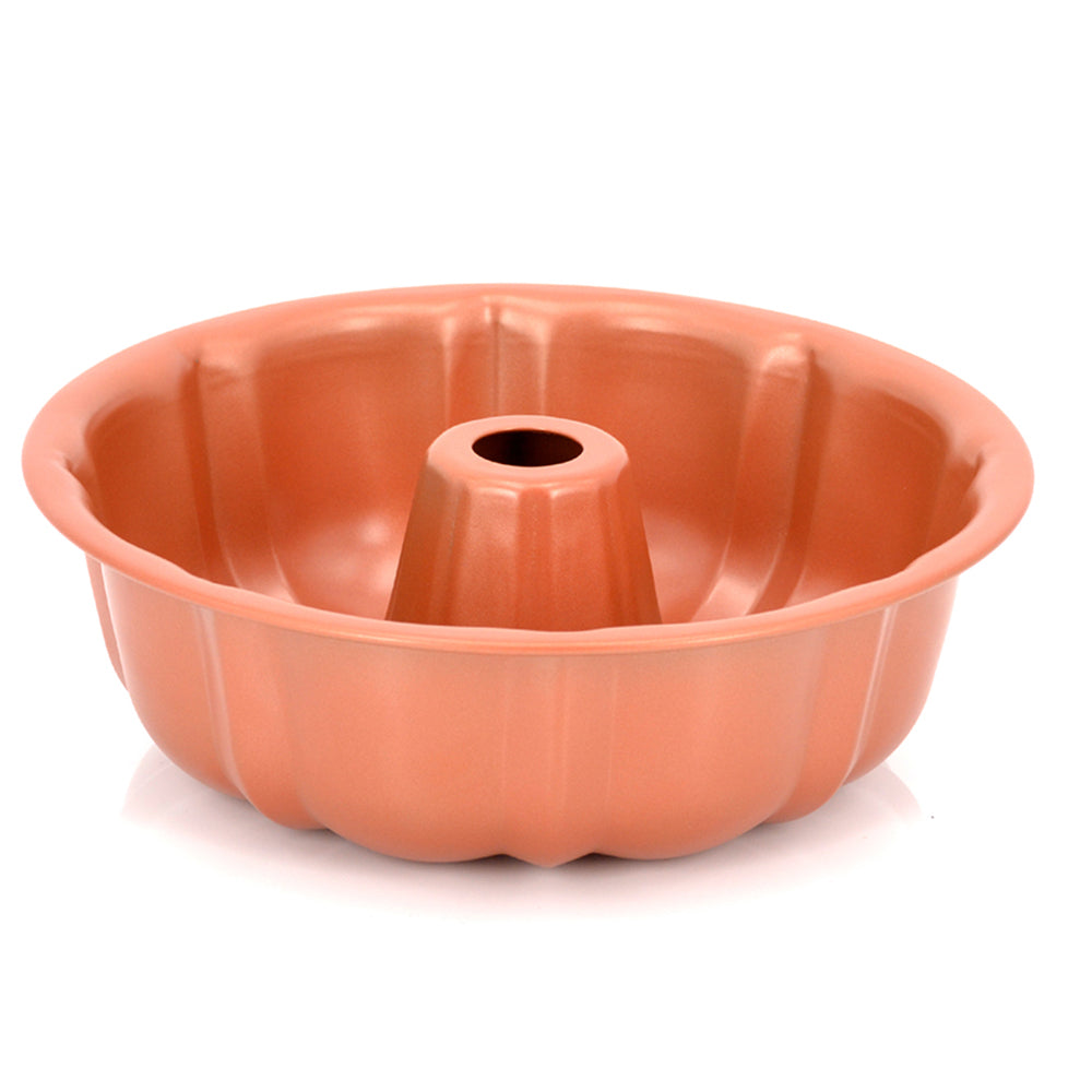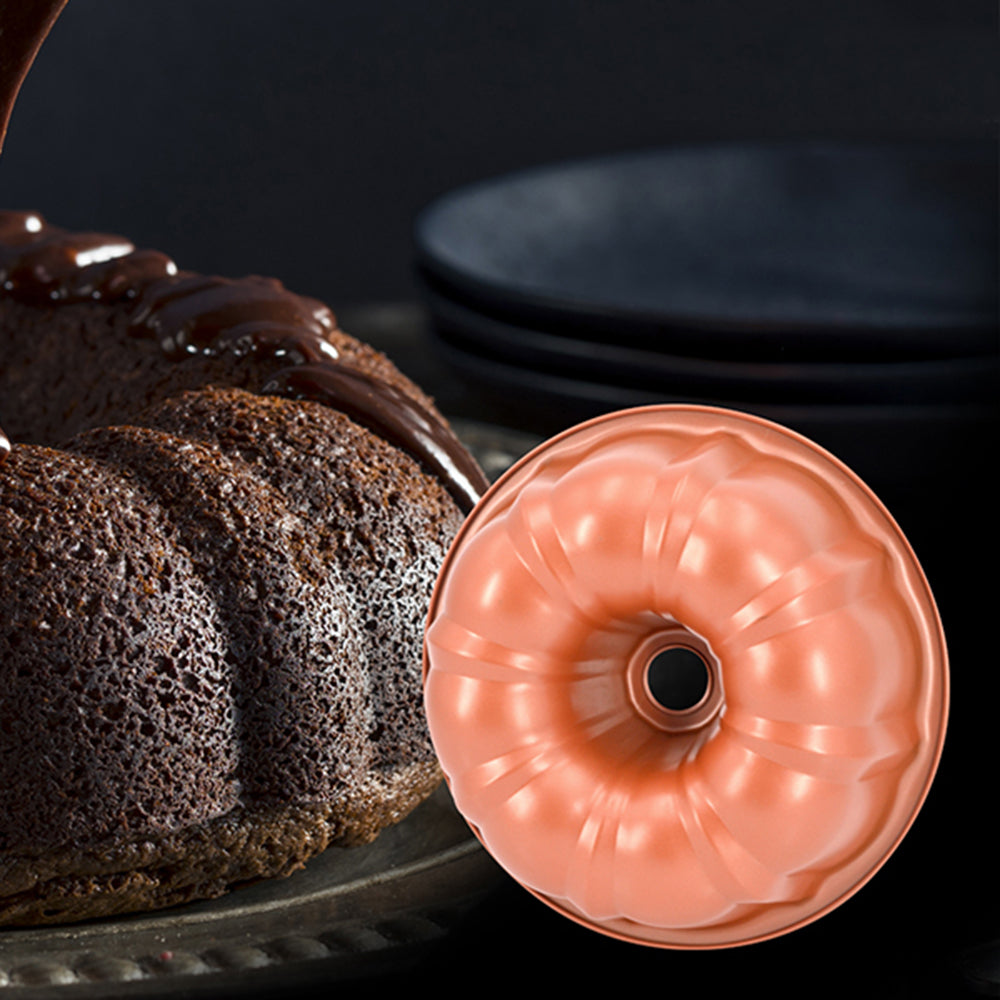 This Bundt Pan features a non-stick copper coating for easy release and quick clean up. The decorative ridges makes beautifully sculpted Bundt cakes every time, just use your favorite cake mix or recipe.