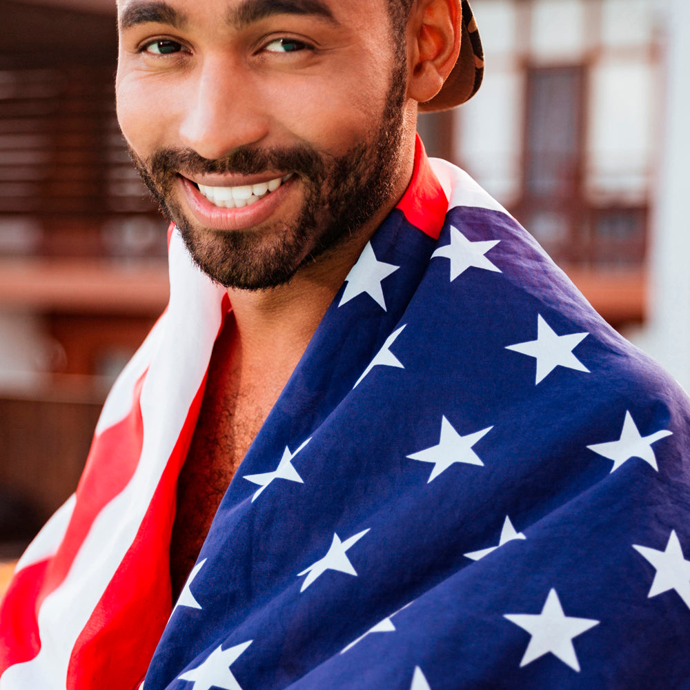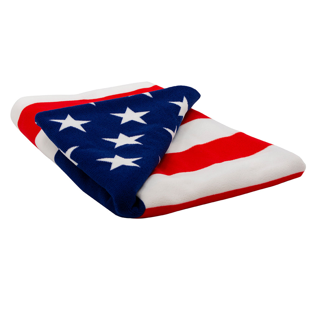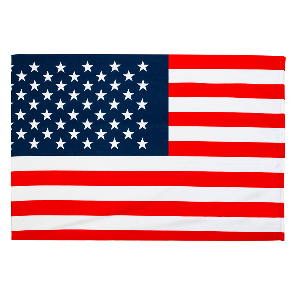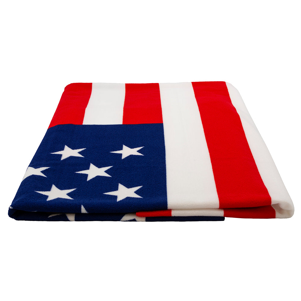 These USA flag beach towels with rich bright colors are perfect for your summer party or the beach. Show your American pride all summer long with this large, American flag print beach towel.
