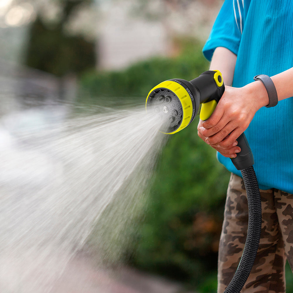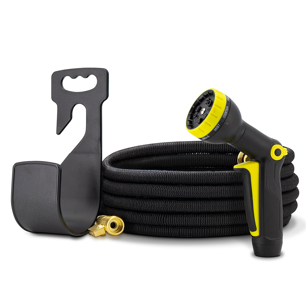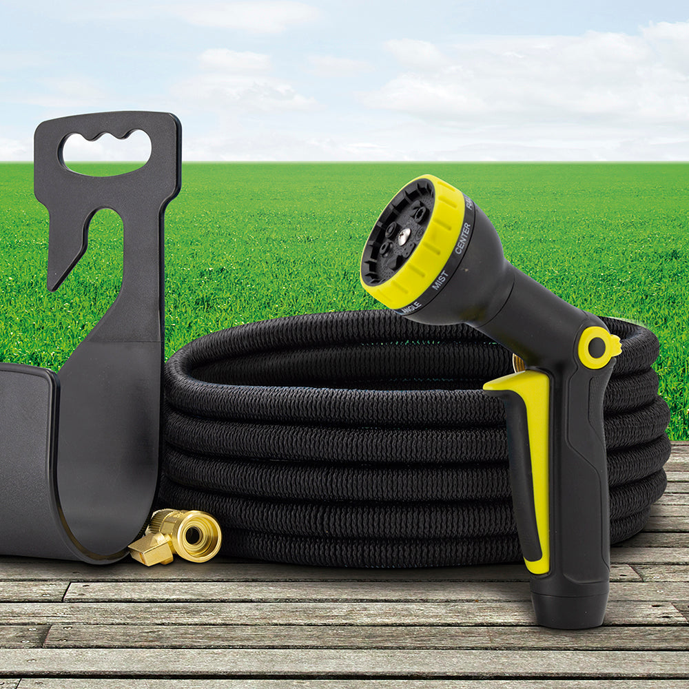 Expandable Garden Hose is corrosion free, rust free, super lightweight, kink free & also is resistant to extreme weather conditions. Features flexible latex internal hose encased in a sturdy Heavy-Duty Fabric outer layer that allows consistent, steady, and high-pressure water output. The Heavy-Duty Fabric layer is tear resistant and has a great degree of flexibility allowing it to easily storage convenient and tangle free